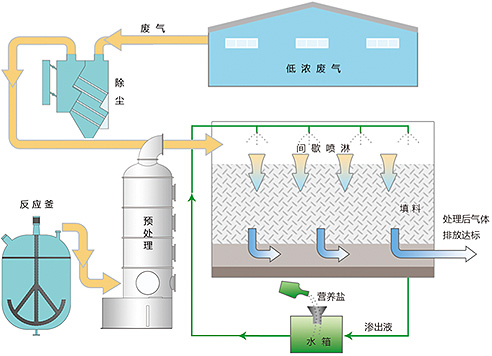 該類工況廢氣的特點是高惡臭、高濕度、高腐蝕性,對反應器的耐腐蝕性、除臭效果要求較高;同時惡臭物質和VOCs同時存在,治理難度大。